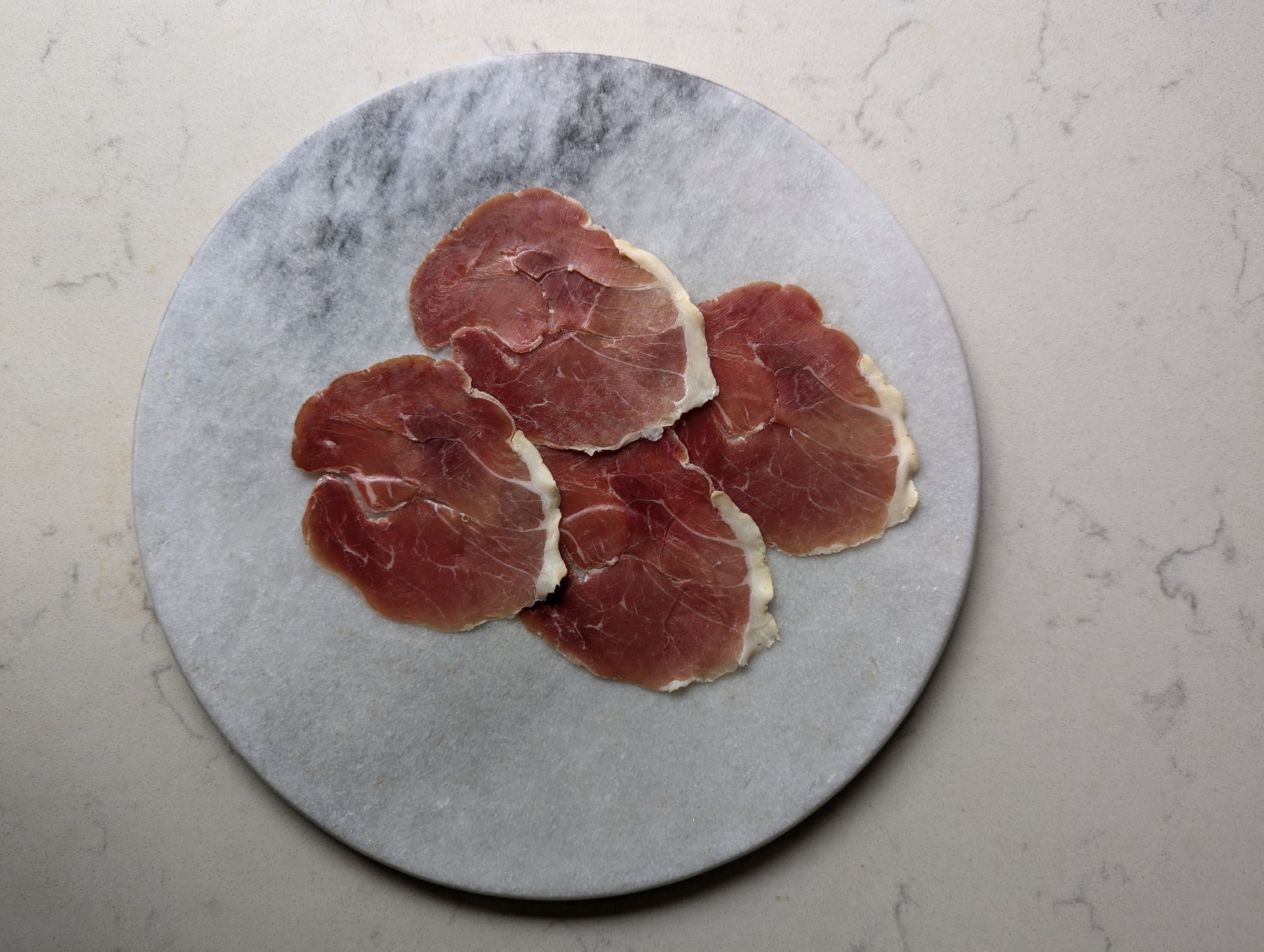 The culatello comes from the ham which has a natural sweetness. We add a little cracked black pepper to round off the taste.
