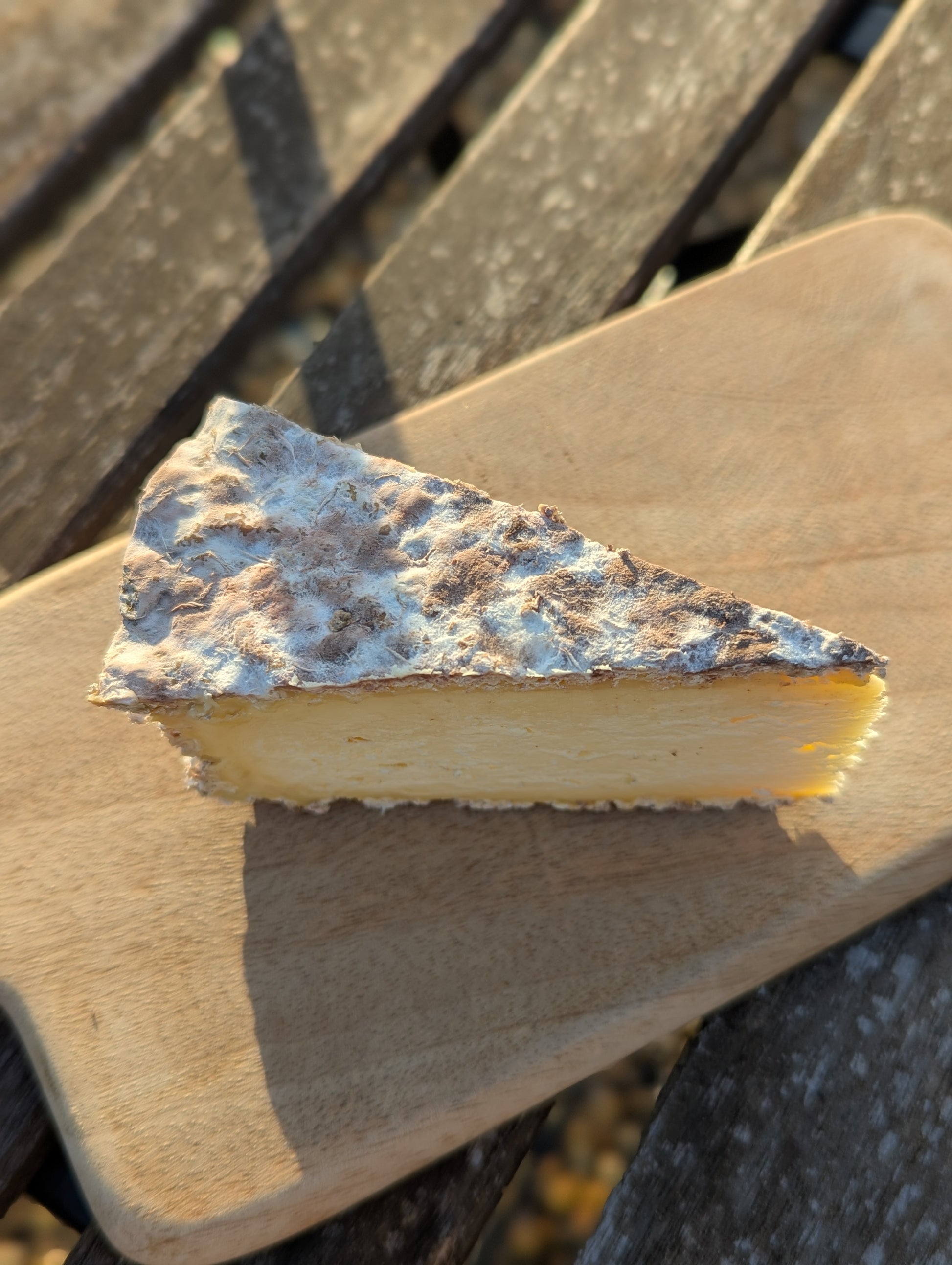 You may have tasted our Graffham Down White if you've visited our stand at an event recently. This is a natural variation on our usual Graffham Downs; instead of a blue mould developing on the rind, a white mould has developed, resulting in a traditional brie. The flavour is more intense than our usual Graffham Down, making it one of our strongest cheeses.